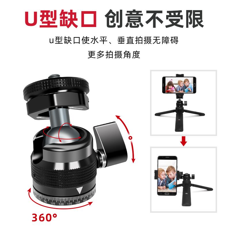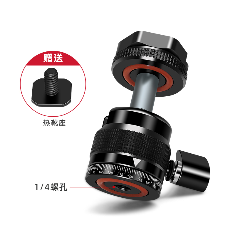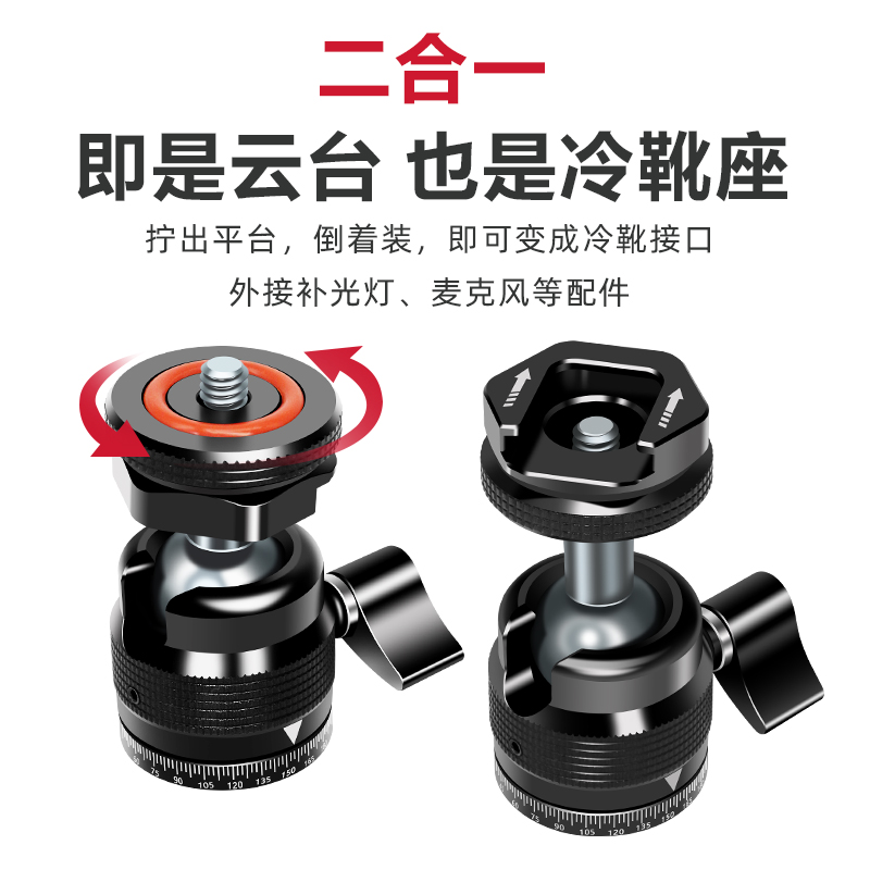 轻韵全金属铝合金万向旋转云台直播抖音热靴接口补光灯话筒监视器同屏器调节配件三脚架通用固定座