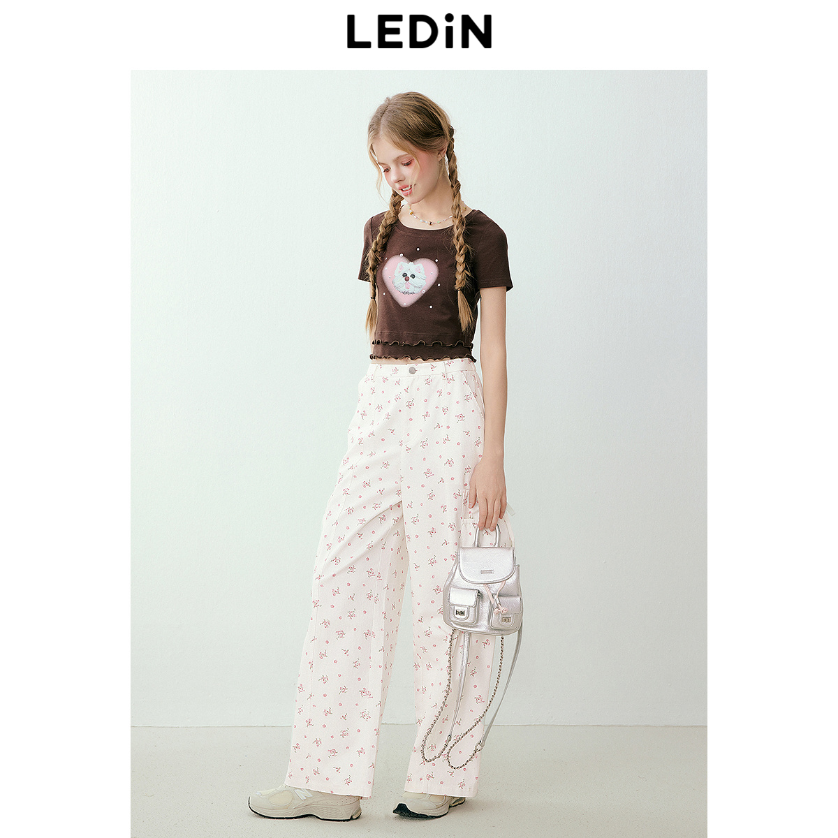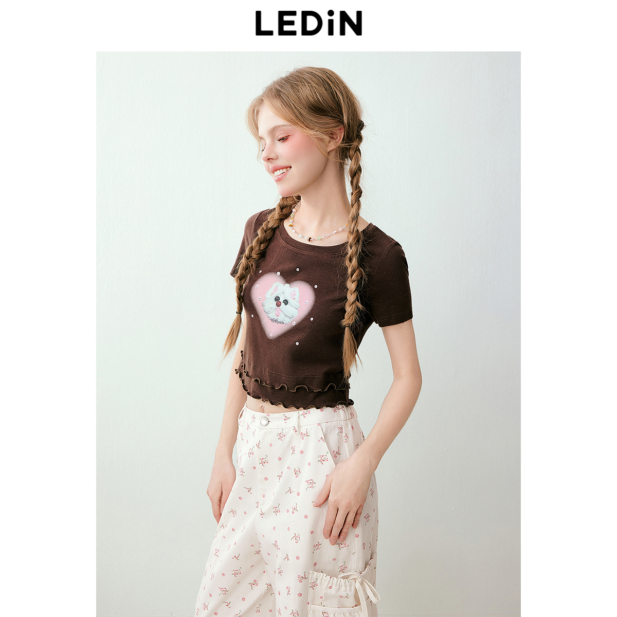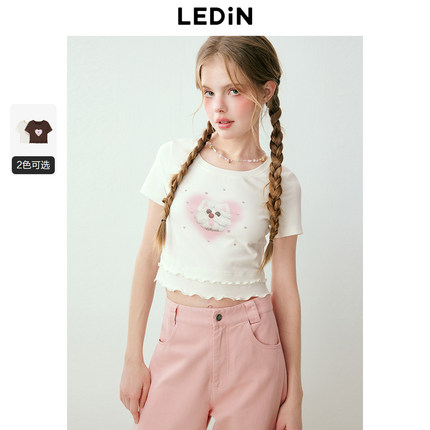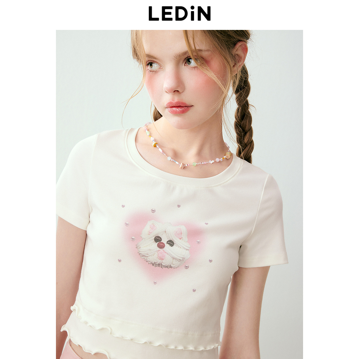 乐町甜美少女奶油小狗俏皮印花T恤早春新款针织内搭短袖上衣