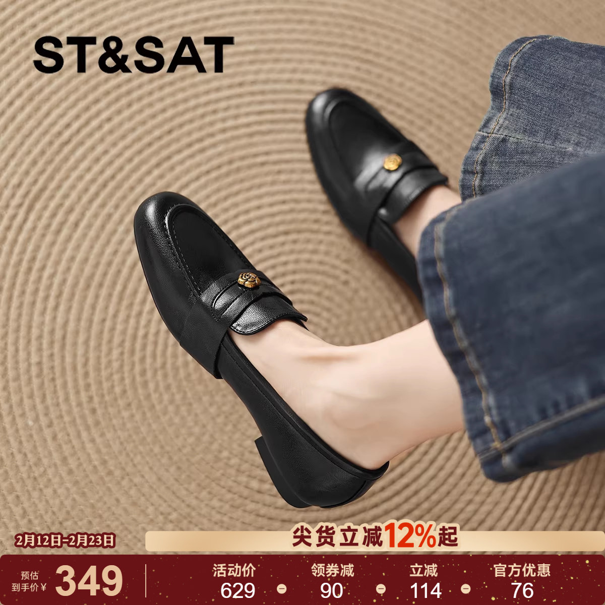 星期六复古乐福鞋女2025新款秋季不累脚平底鞋山茶花皮鞋通勤单鞋