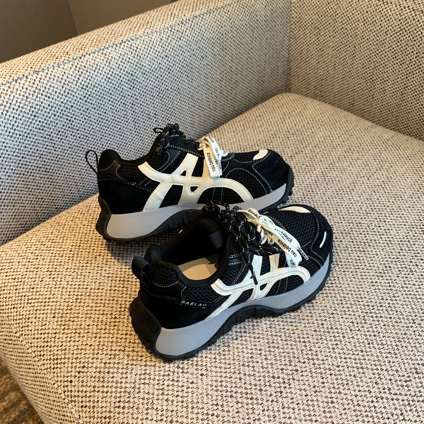 【TFM】厚底3.5CM~网面透气阿甘鞋女新款百搭系带休闲运动跑步鞋