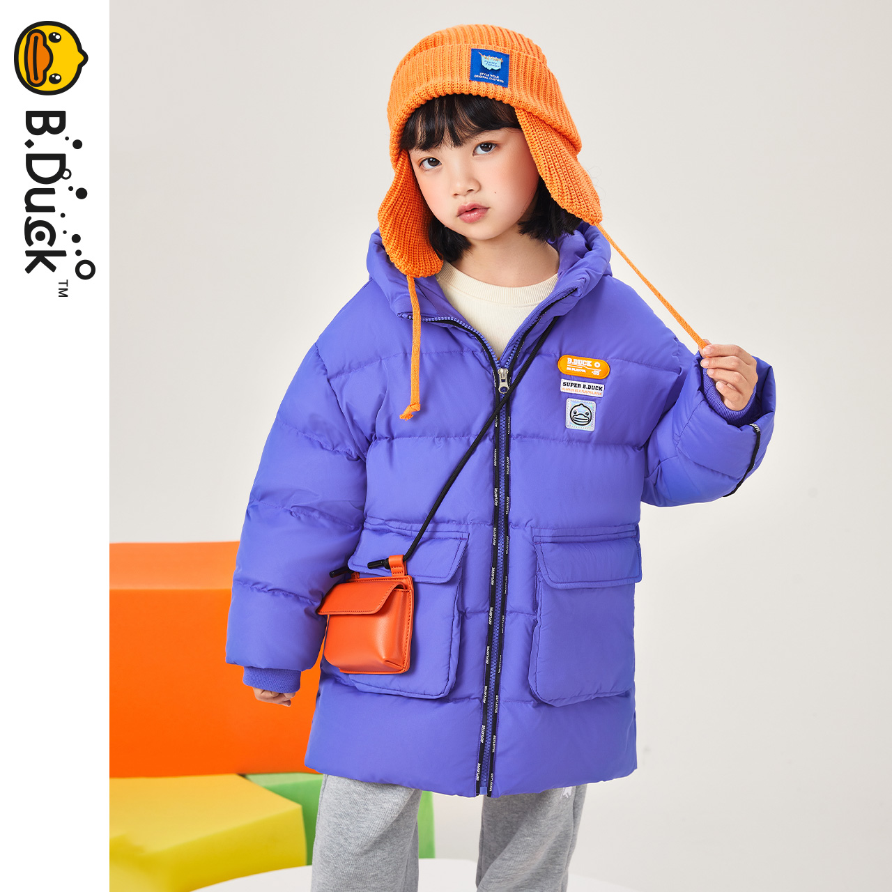 bduck小黄鸭童装儿童羽绒服男童中长款外套2025新款女童保暖冬装
