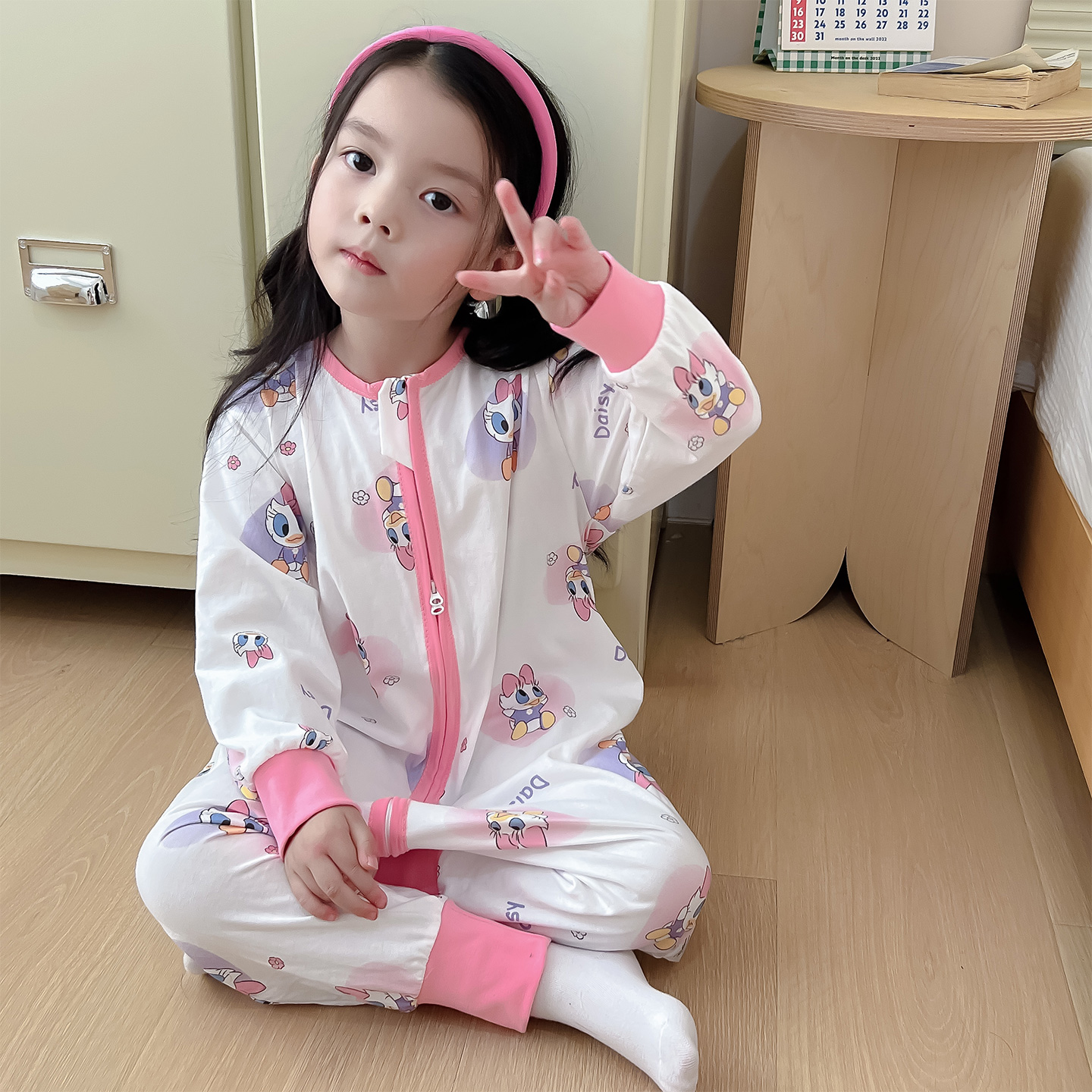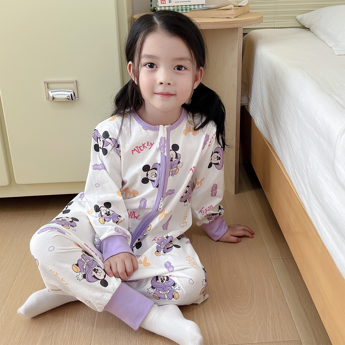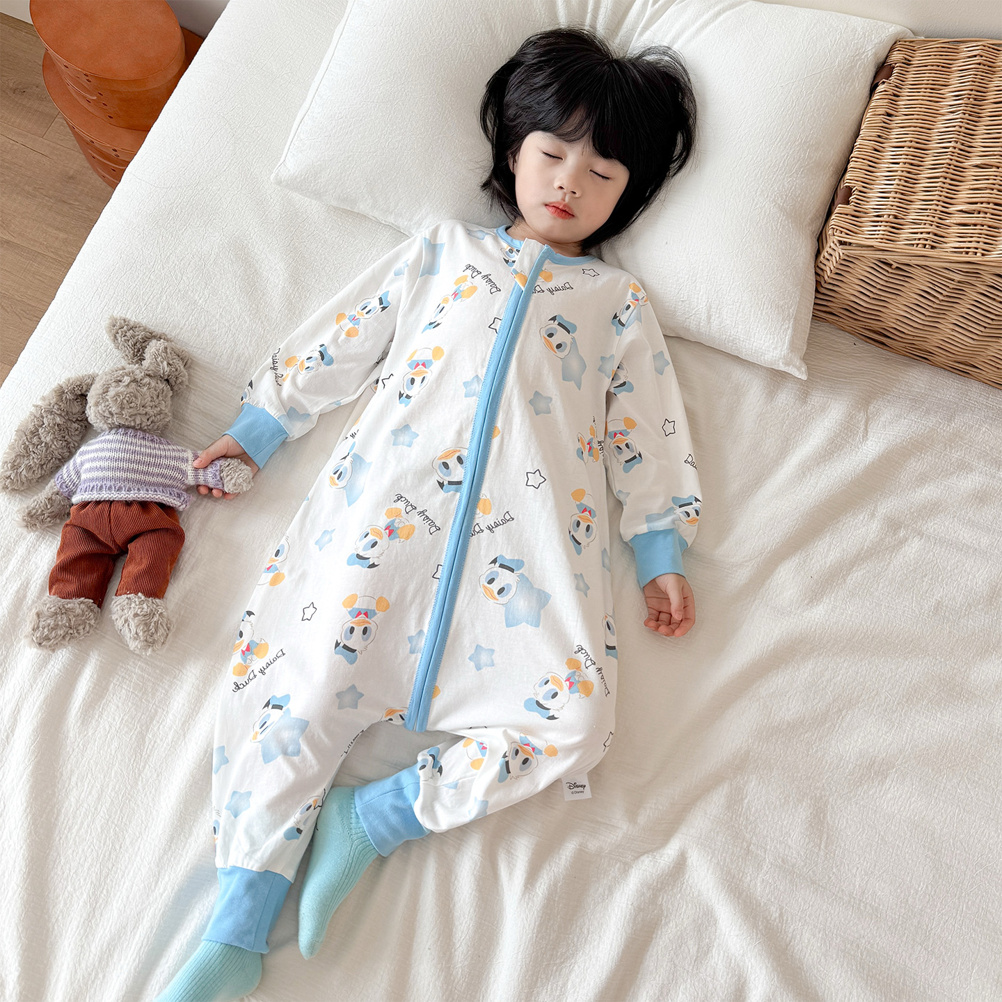 迪士尼儿童连体睡衣A类纯棉男女宝宝睡袋春秋冬款婴儿分腿防踢被