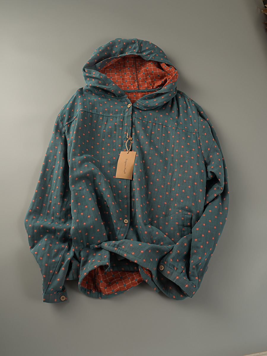 双层棉纱连帽设计感长袖衬衫女秋季新款韩版宽松休闲百搭开衫上衣