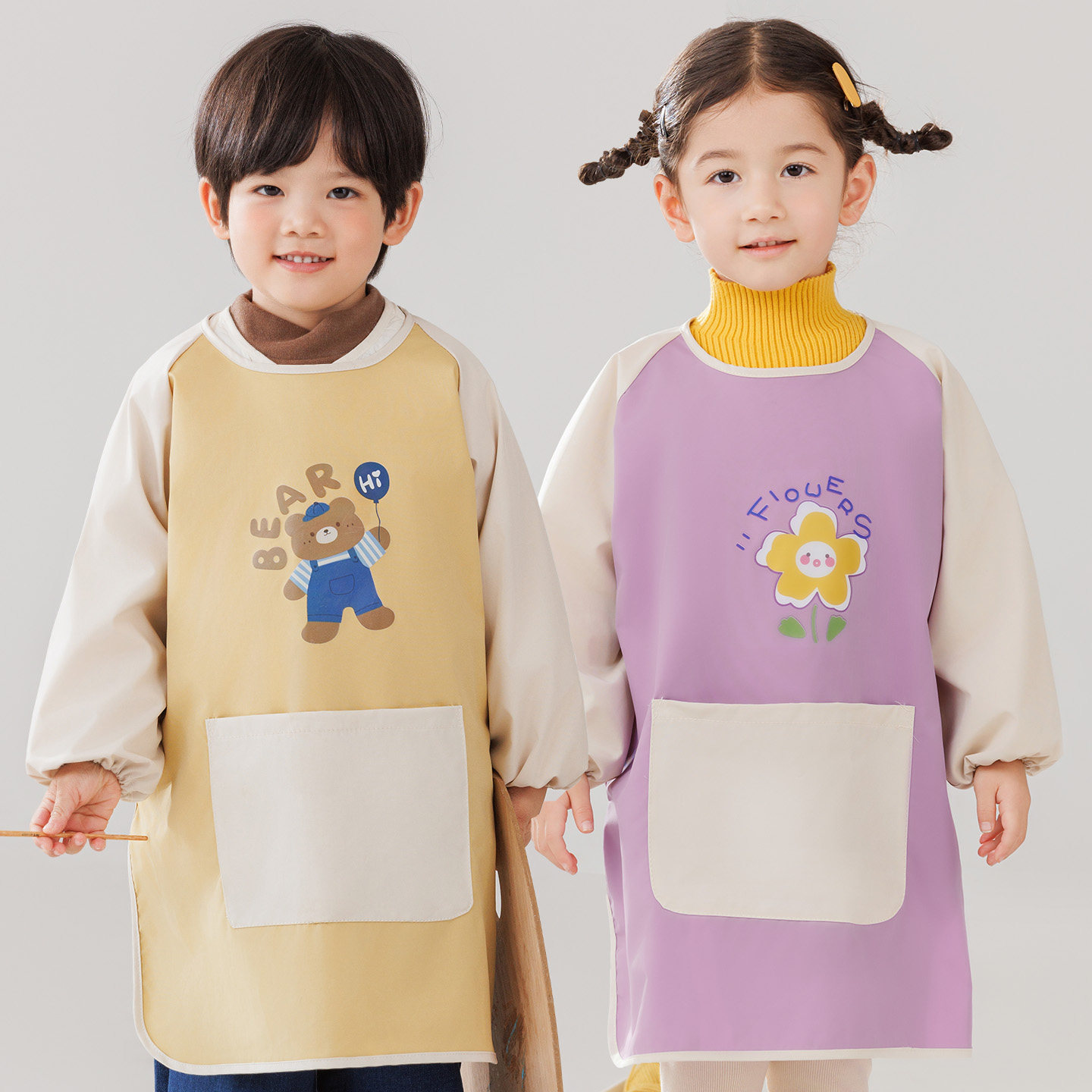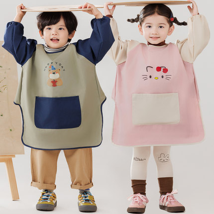 宝宝画画防脏罩衣男女童卡通魔术贴长袖围裙手工防脏护衣可印logo