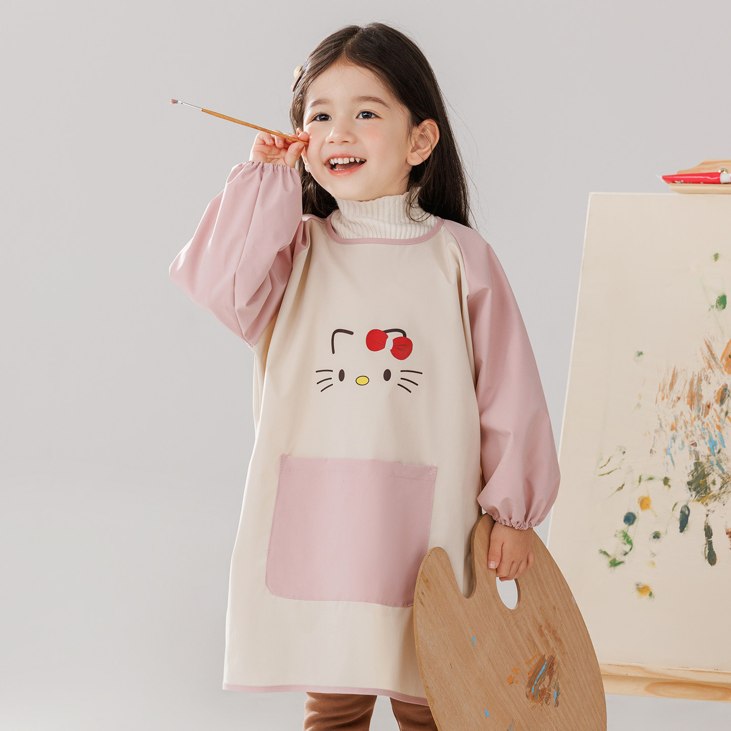 儿童魔术贴反穿画画防脏防水围裙