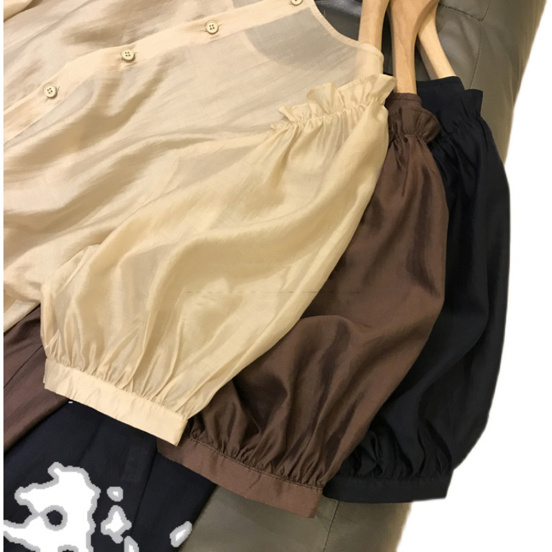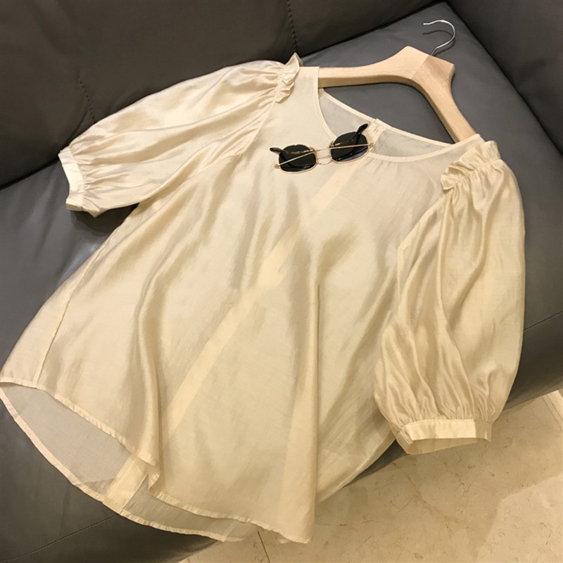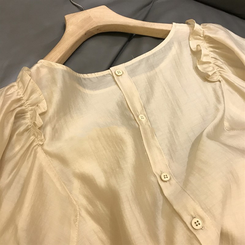 雪纺衬衫女夏薄款短袖2024年新款t恤设计感小众洋气泡泡袖上衣女