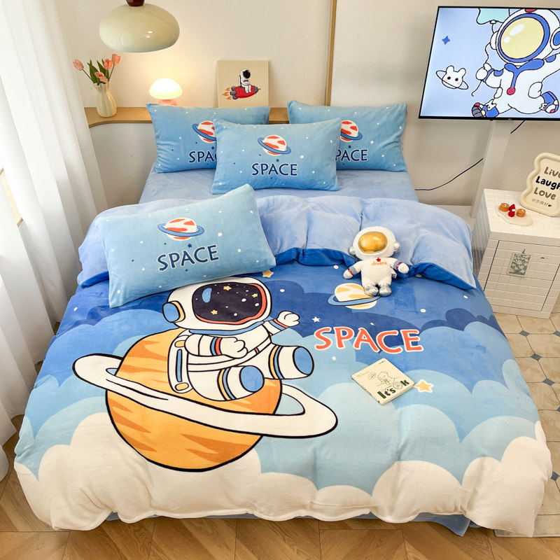 加厚牛奶绒四件套冬季加绒卡通风