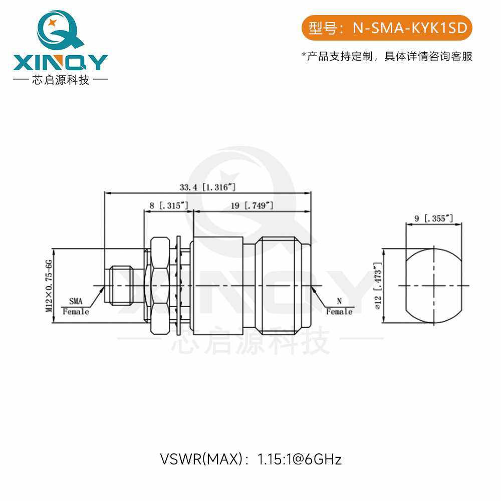 XINQY N-SMA-KYK 射频同轴转接器 SMA端 螺纹穿墙面板固定 转接头