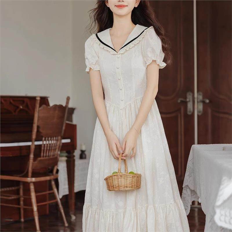 文艺方领蝴蝶结连衣裙少女夏装2025新款初高中学生学院风白色长裙