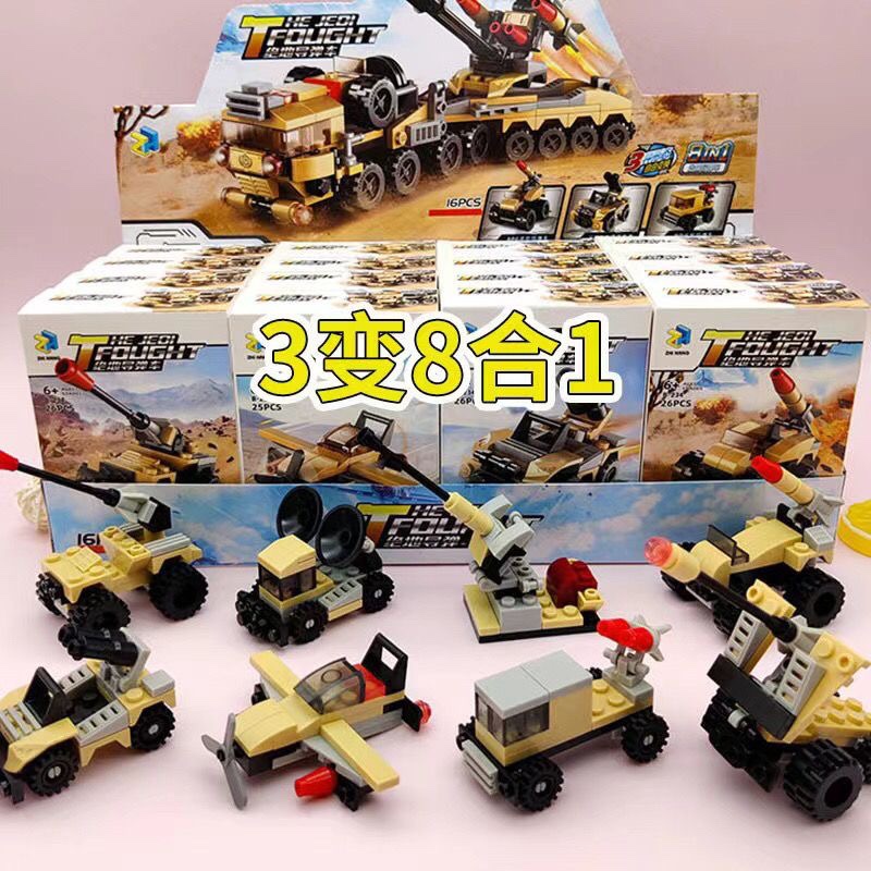 新款拼装积木绝地导弹车3变八合1军事坦克直升机儿童玩具男孩礼物