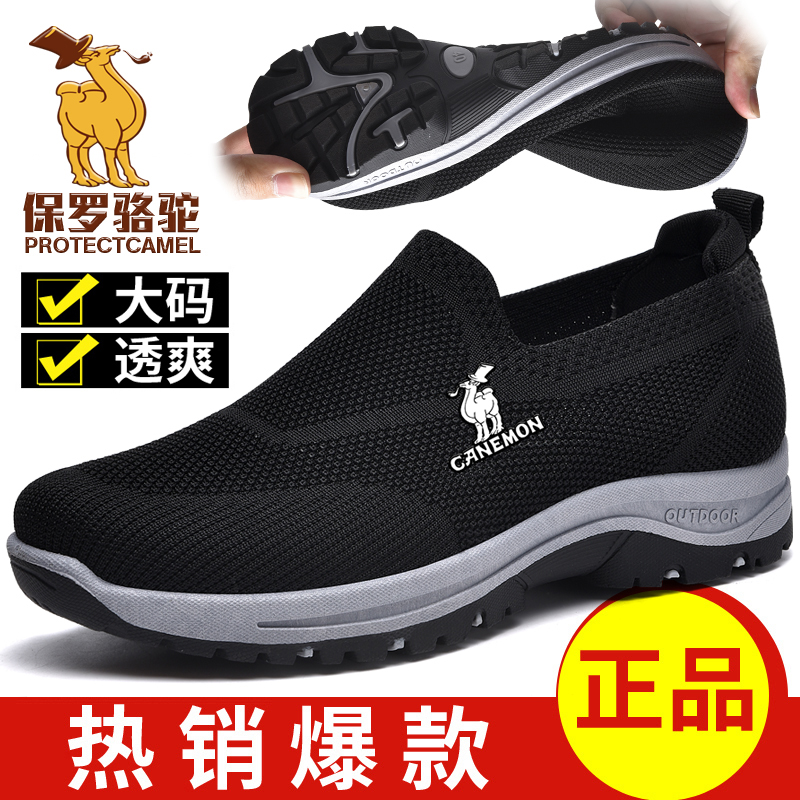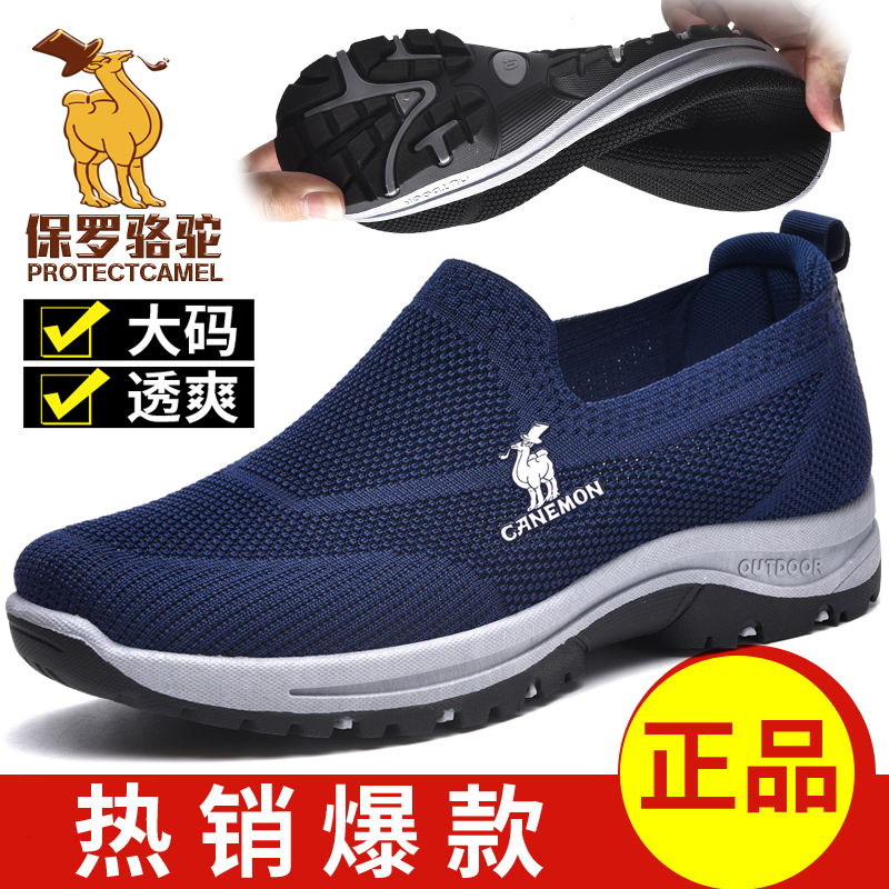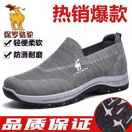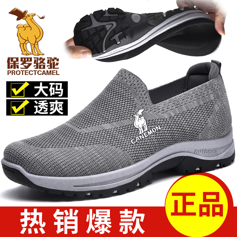 保罗骆驼男鞋夏季懒人一脚蹬休闲鞋爸爸散步软底舒适中老年健步鞋