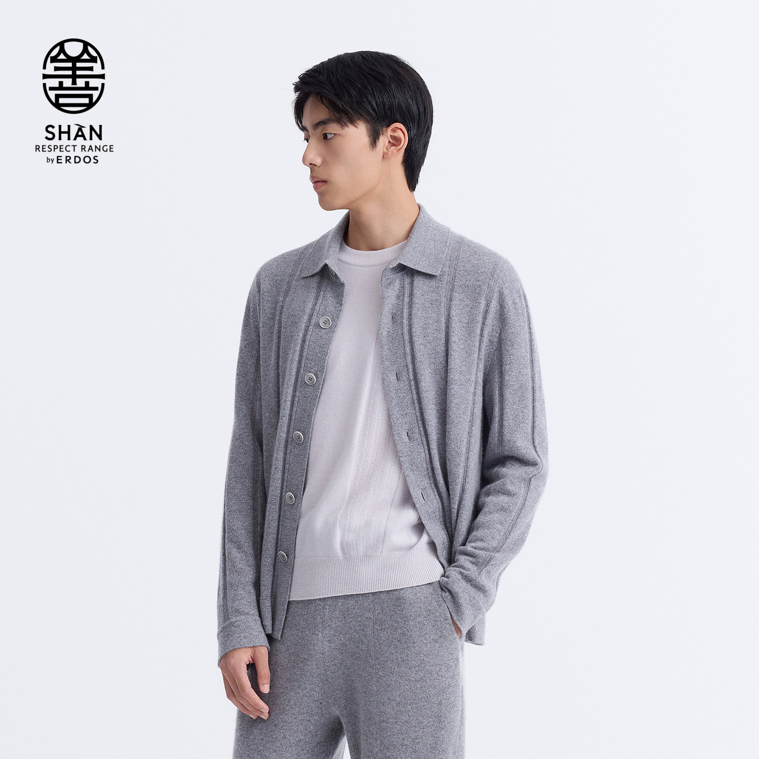 【善系列】ERDOS 男装羊绒开衫25年新品初绒翻领厚款衬衫版型