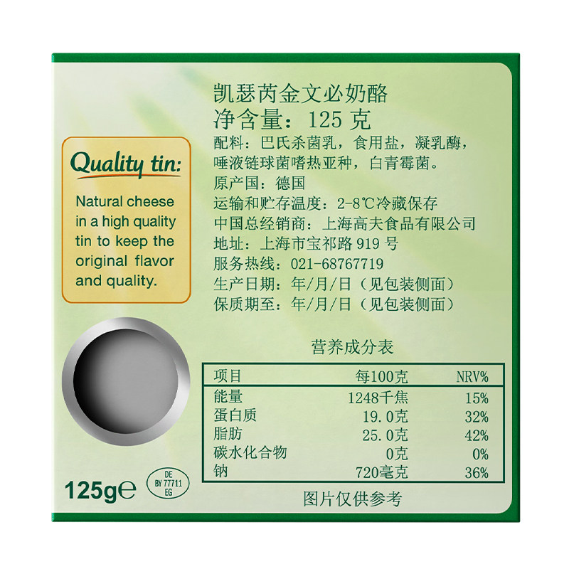 多美鲜德国进口金文必奶酪125g卡门贝尔奶酪原制软质奶酪加热流心