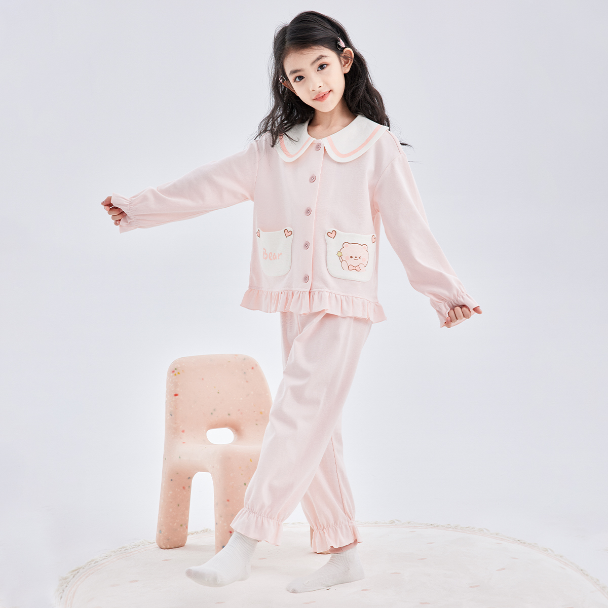 笛莎女童睡衣春秋纯棉2024新款甜美中大童全棉长袖空调家居服套装