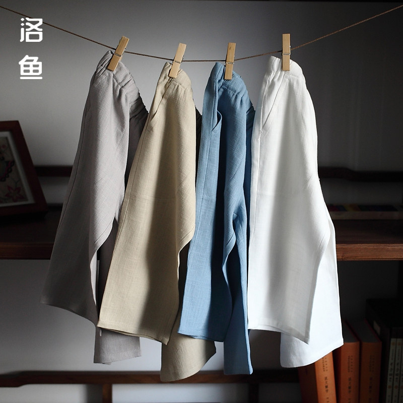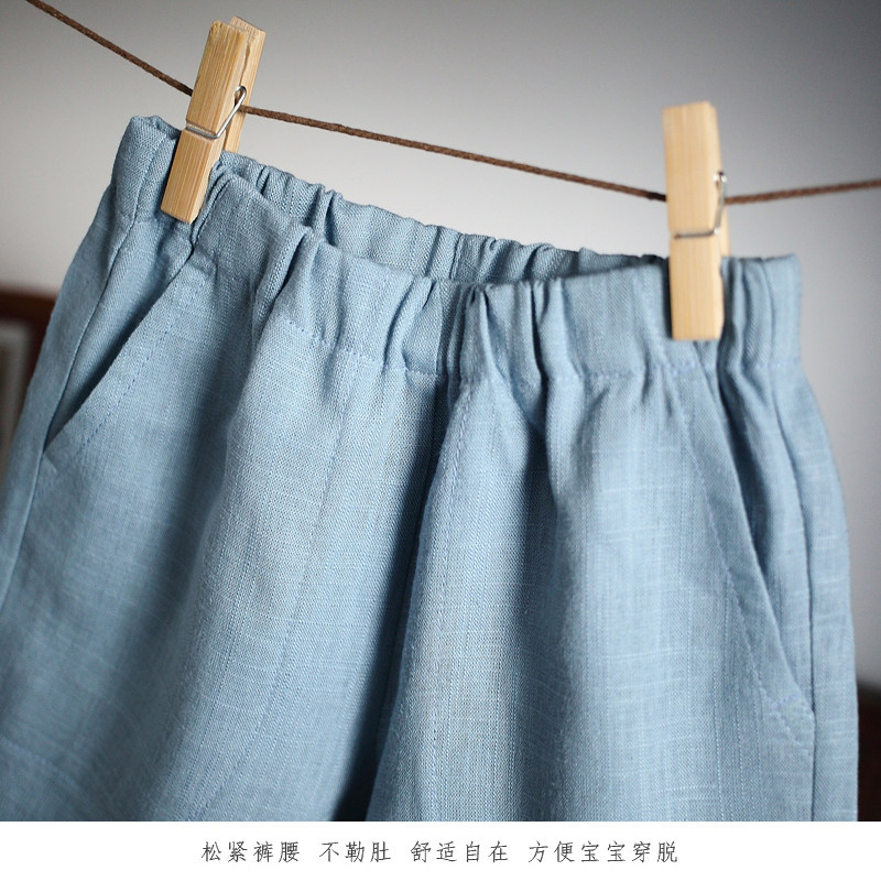 儿童夏季长裤洛鱼手工制作男女童宝宝透气薄棉麻休闲宽松萝卜裤子