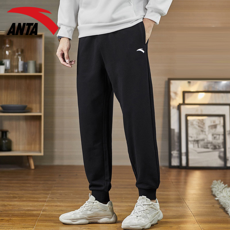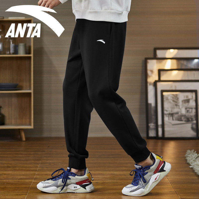 安踏运动裤男裤2025冬季新款宽松收口束脚卫裤休闲九分裤黑色长裤
