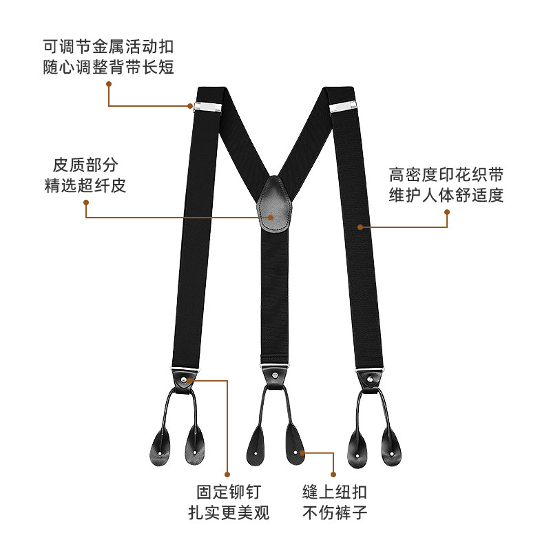 男士背带夹复古英伦风六夹纽扣成人绅士防滑弹力西装松紧吊裤带