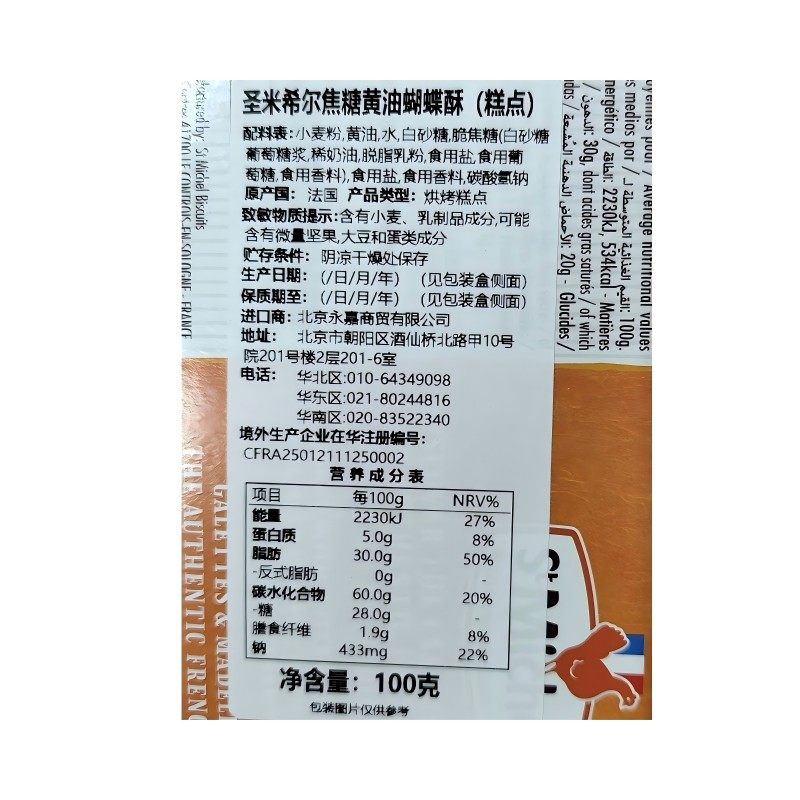 圣米希尔法国进口焦糖黄油蝴蝶酥100g休闲零食下午茶小吃