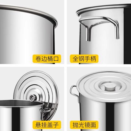 不锈钢桶圆桶带盖汤锅商用汤桶加厚家用卤水桶油桶大容量锅不锈钢
