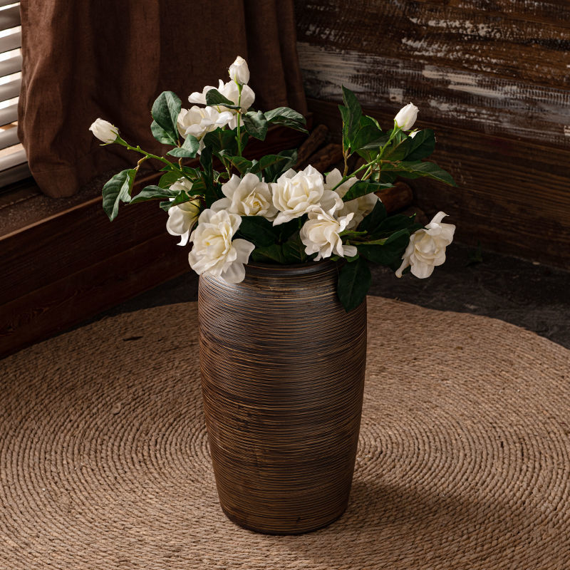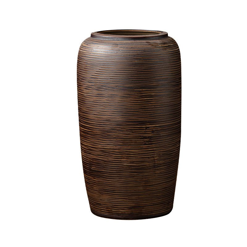 景德镇落地大花瓶新中式咖啡色原色棕色竖纹客厅庭院别墅酒店摆件