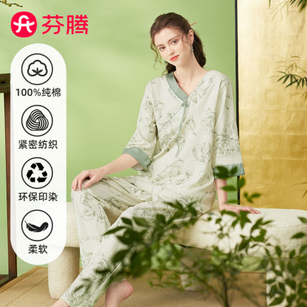 芬腾女士纯棉国风家居服睡衣套装