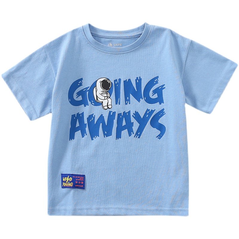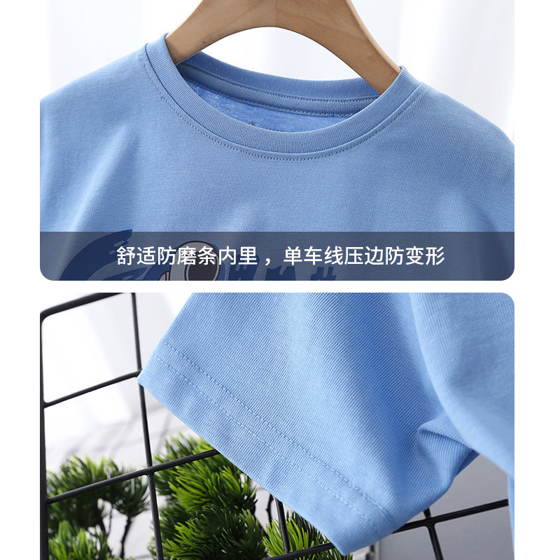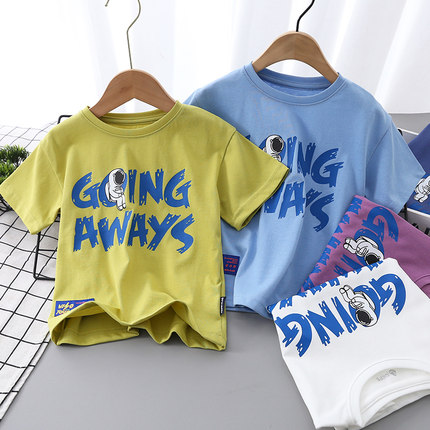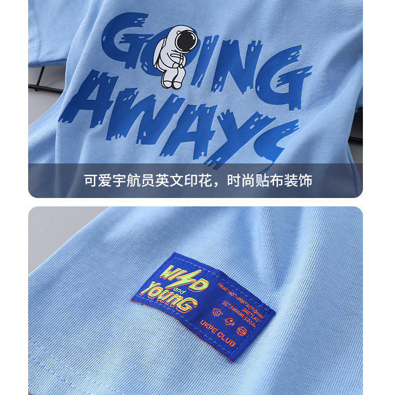 儿童装纯色柔软棉印花太空人短袖T恤男童时尚打底汗衫夏季款新品