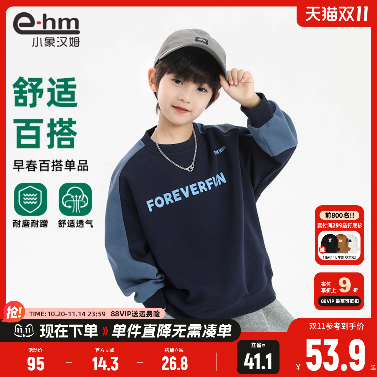 小象汉姆童装中大童男孩男童加绒卫衣儿童冬装2025新款打底衫上衣