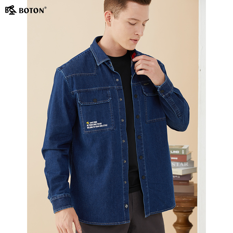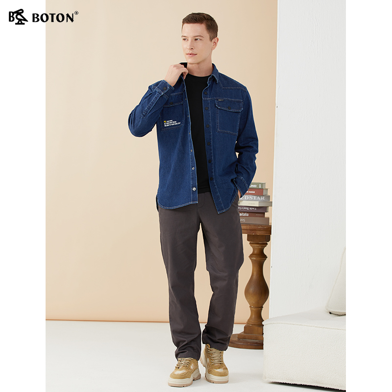【不褪色】波顿2025春秋新款高端男柔软牛仔长袖衬衫休闲百搭外套