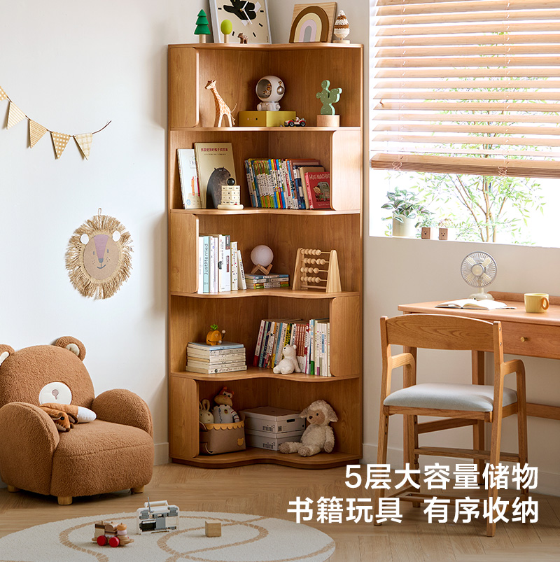 林氏儿童转角书柜置物架家用学生落地墙角储物柜玩具书架家居木业