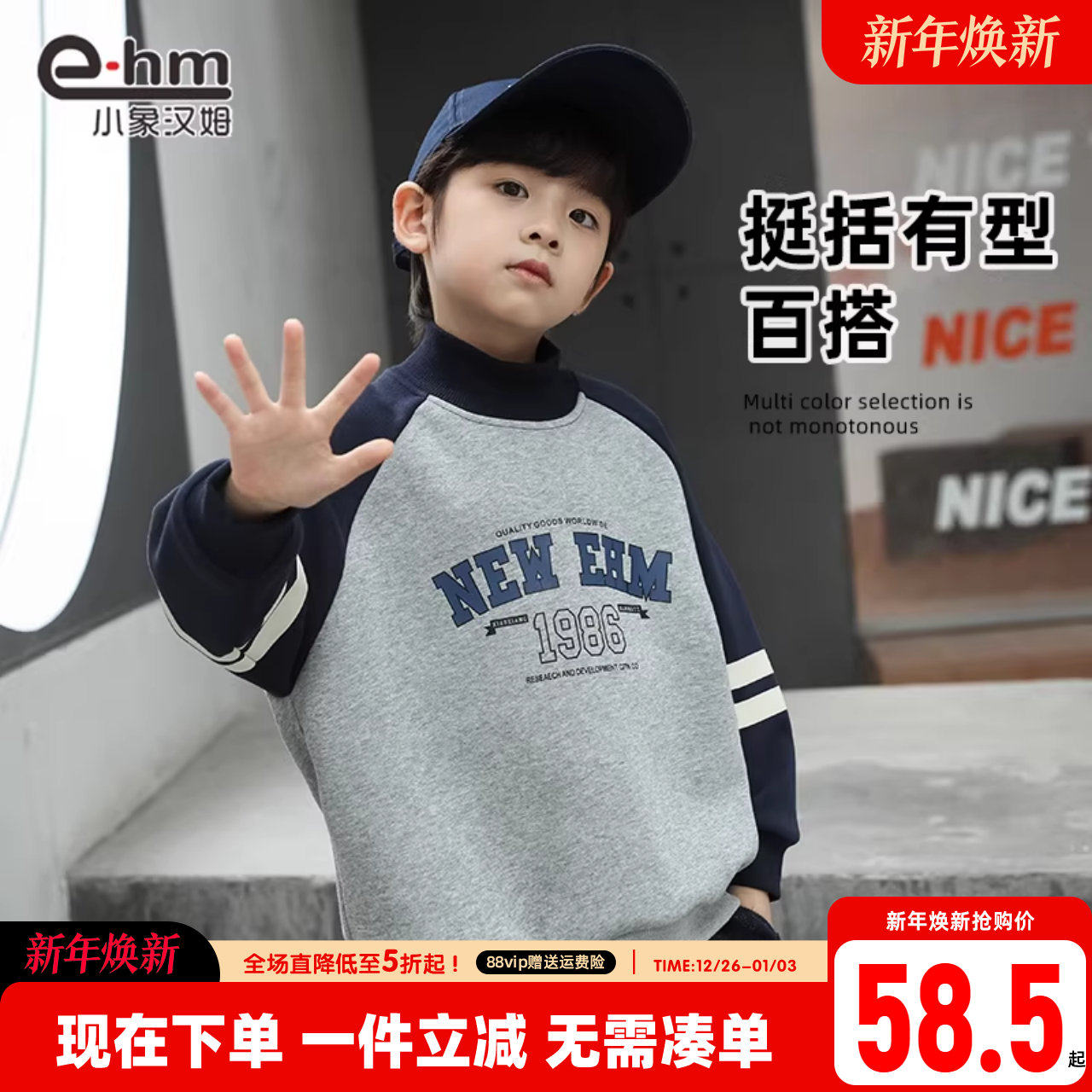 小象汉姆春秋冬男童加绒卫衣新款