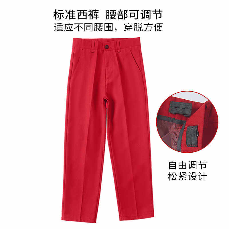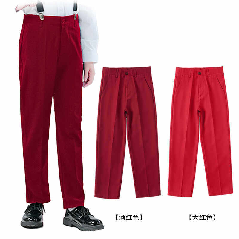 儿童西裤男童酒红色夏季薄款红色表演演出西装裤长裤学生礼服裤子