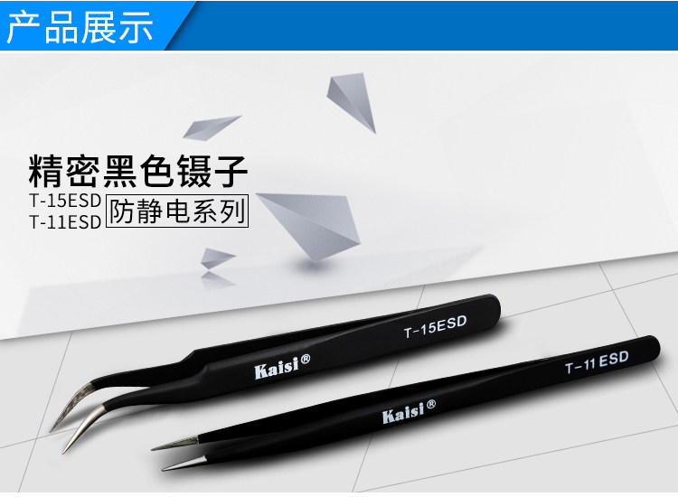 金卡思高品质防静电耐高温镊子精密不锈钢手机维修尖头弯头镊子夹