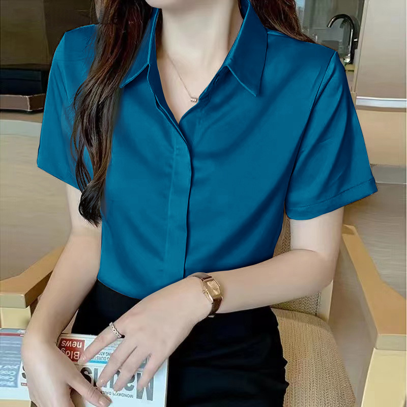 2025新款夏季时尚休闲衬衣宽松设计感纯色职业白色衬衫女短袖