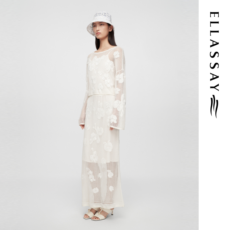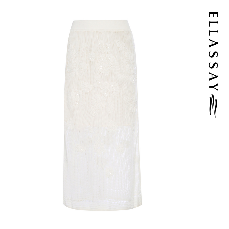 ELLASSAY歌力思25秋冬新款纯棉白色镂空针织半身裙女EWW362M047