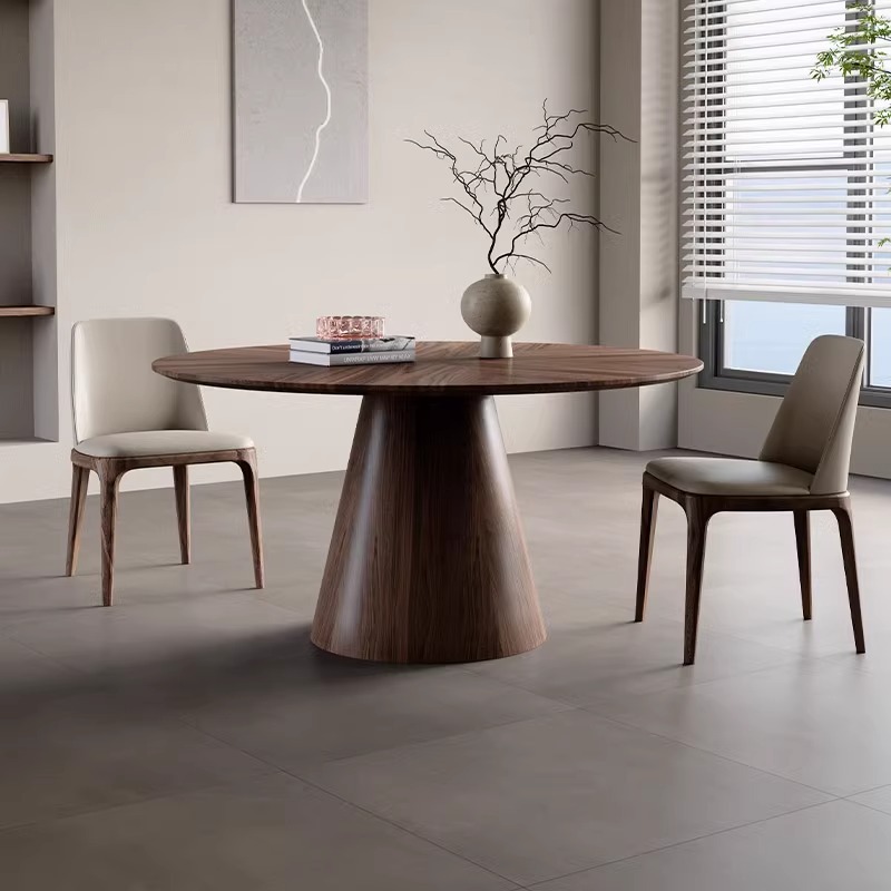 意式实木大圆桌家用白蜡木大小户型圆形餐桌简约 实木餐桌椅组合