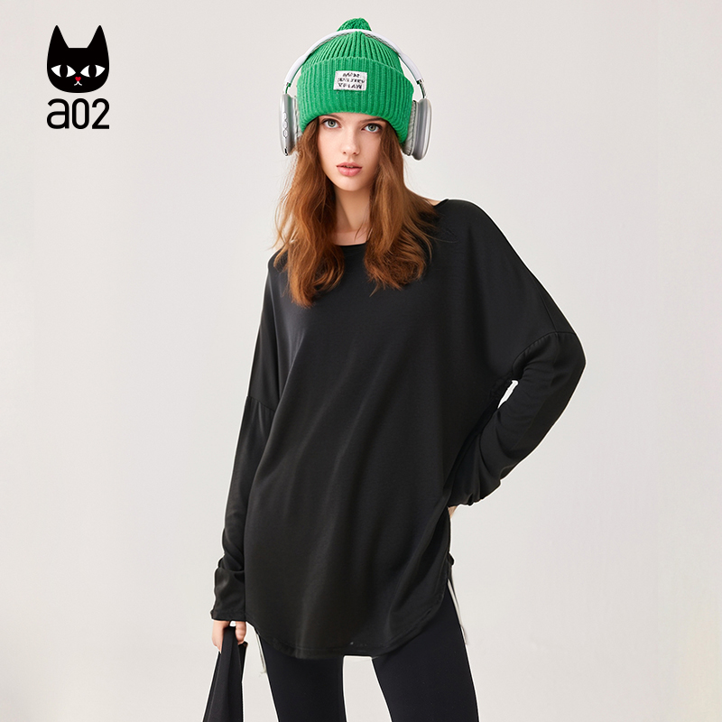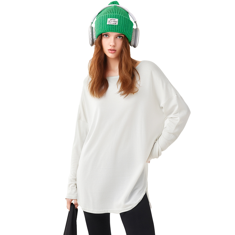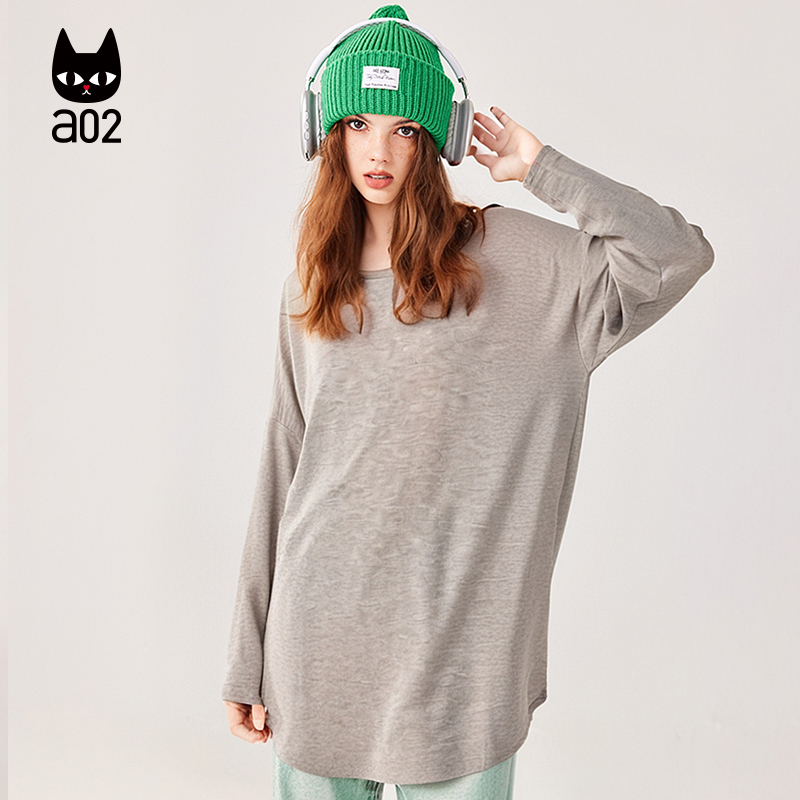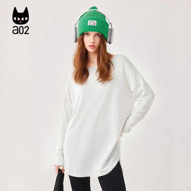a02白色长袖女士t恤2025早秋新款鲨鱼裤遮屁股中长款上衣打底衫