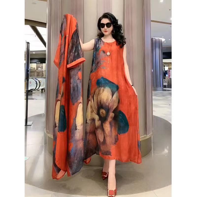 时尚印花连衣裙两件套海南三亚沙滩裙女2025新款海边度假