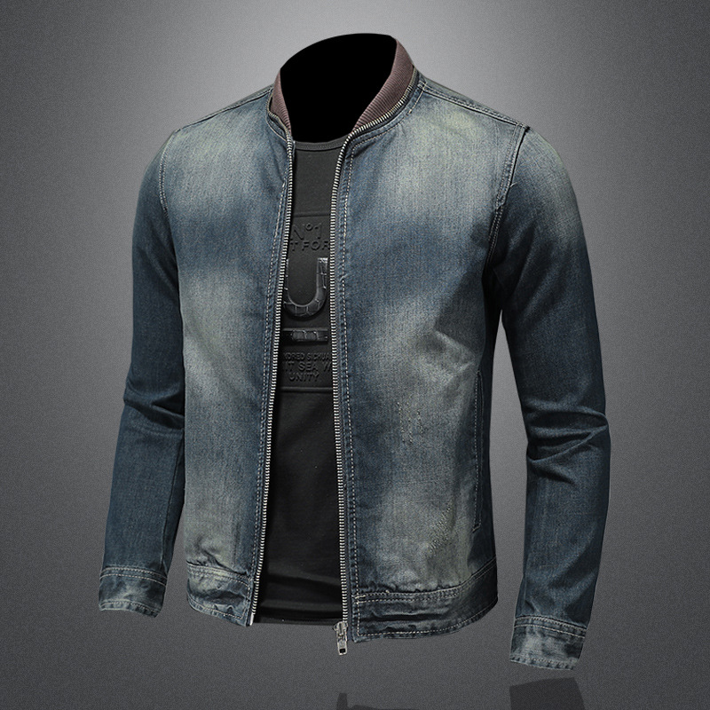 春季棒球领牛仔衣 拉链贯穿牛仔外套男士2025