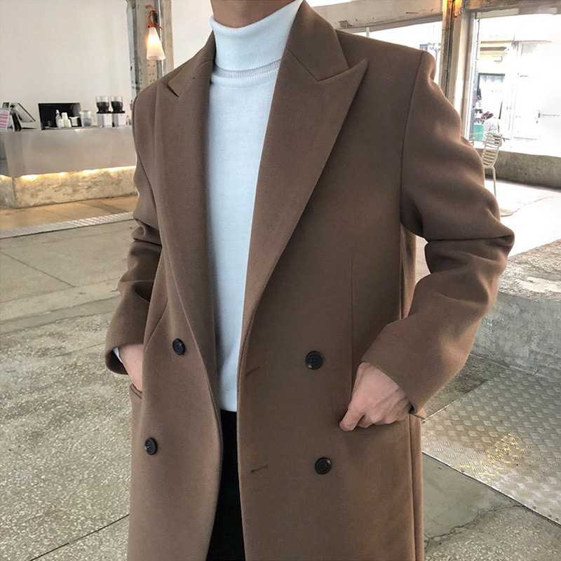 新款韩版百搭中长款风衣男士秋冬过膝英伦风毛呢大衣宽松加厚外套