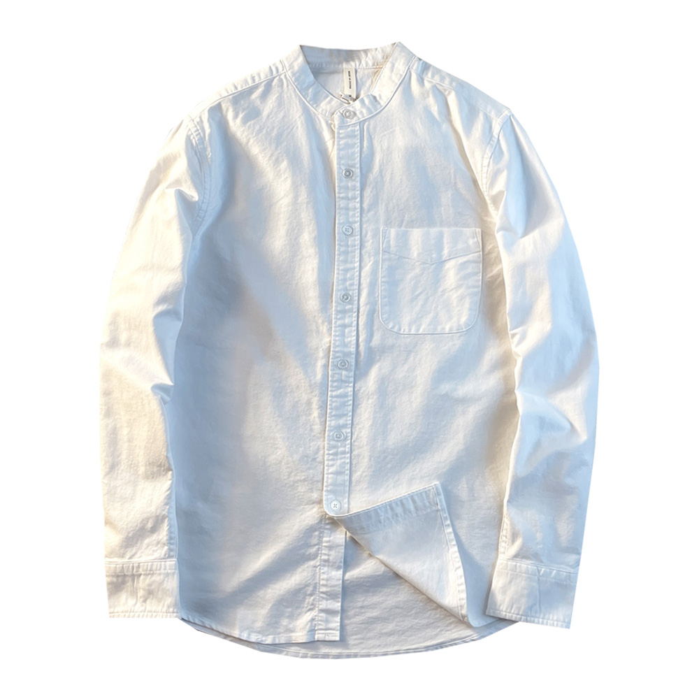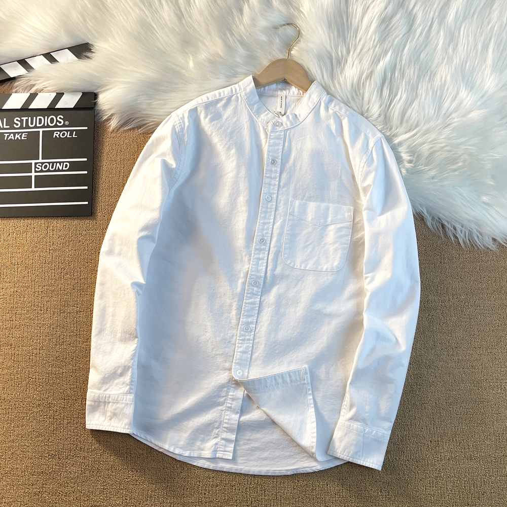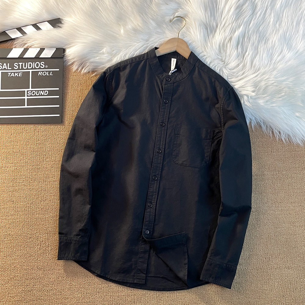 小立领禅意感纯色正肩商务长袖衬衫男士春秋季高级感牛津纺棉衬衣