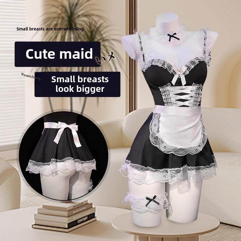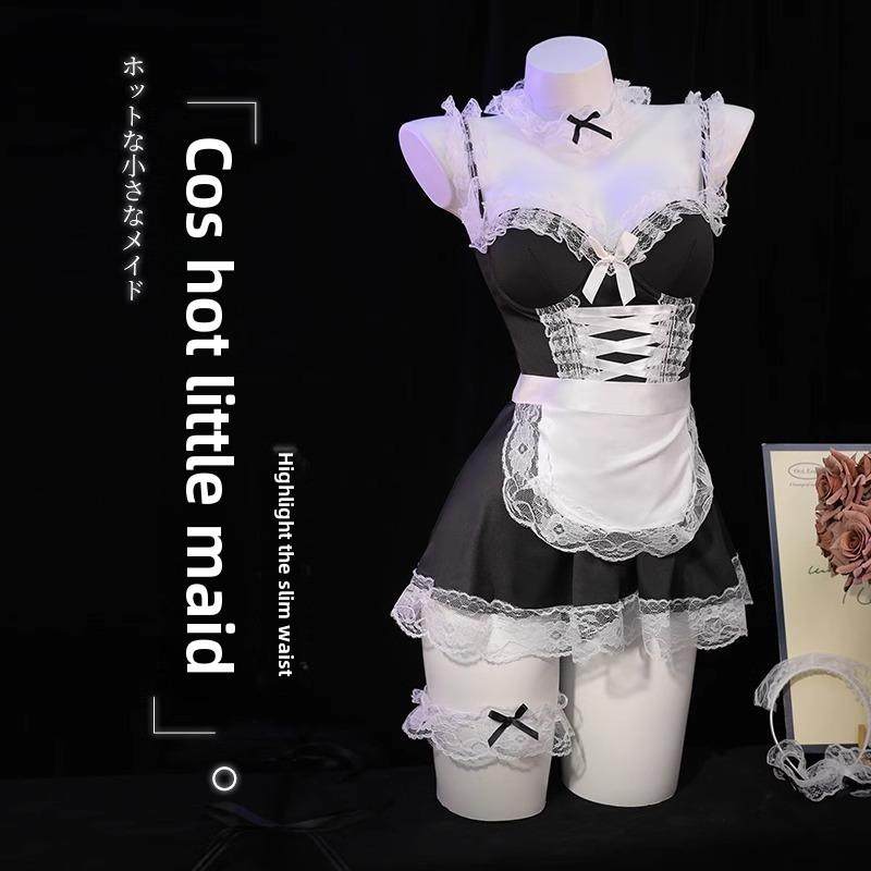 可爱女仆制服纯欲cos套装蕾丝性感睡衣短款睡裙小胸女装2024新款