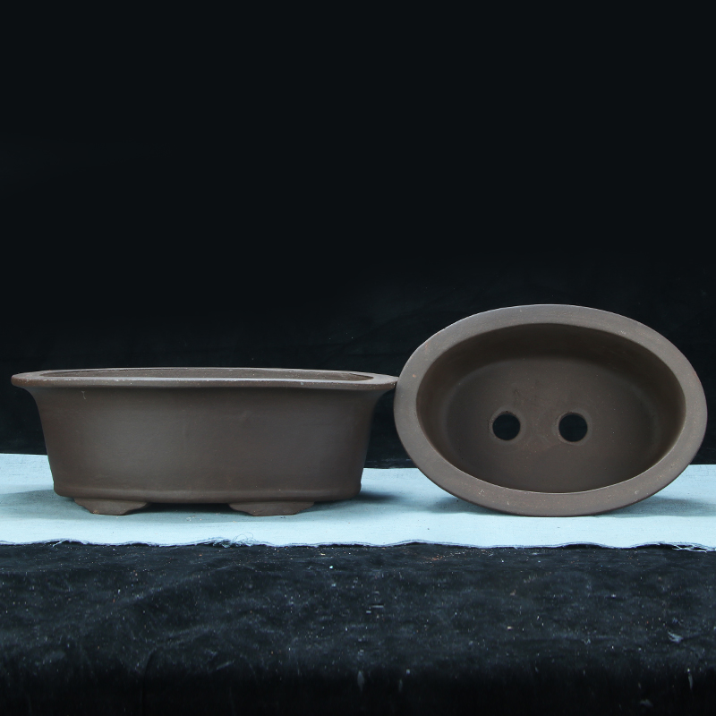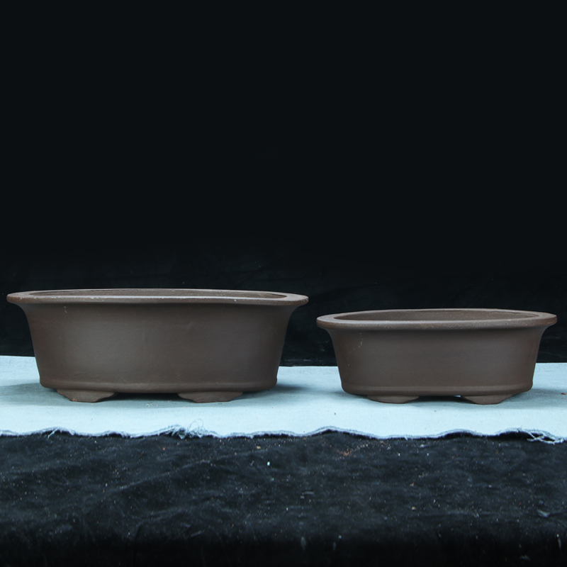 紫砂简约长方马槽腰圆陶瓷盆景盆