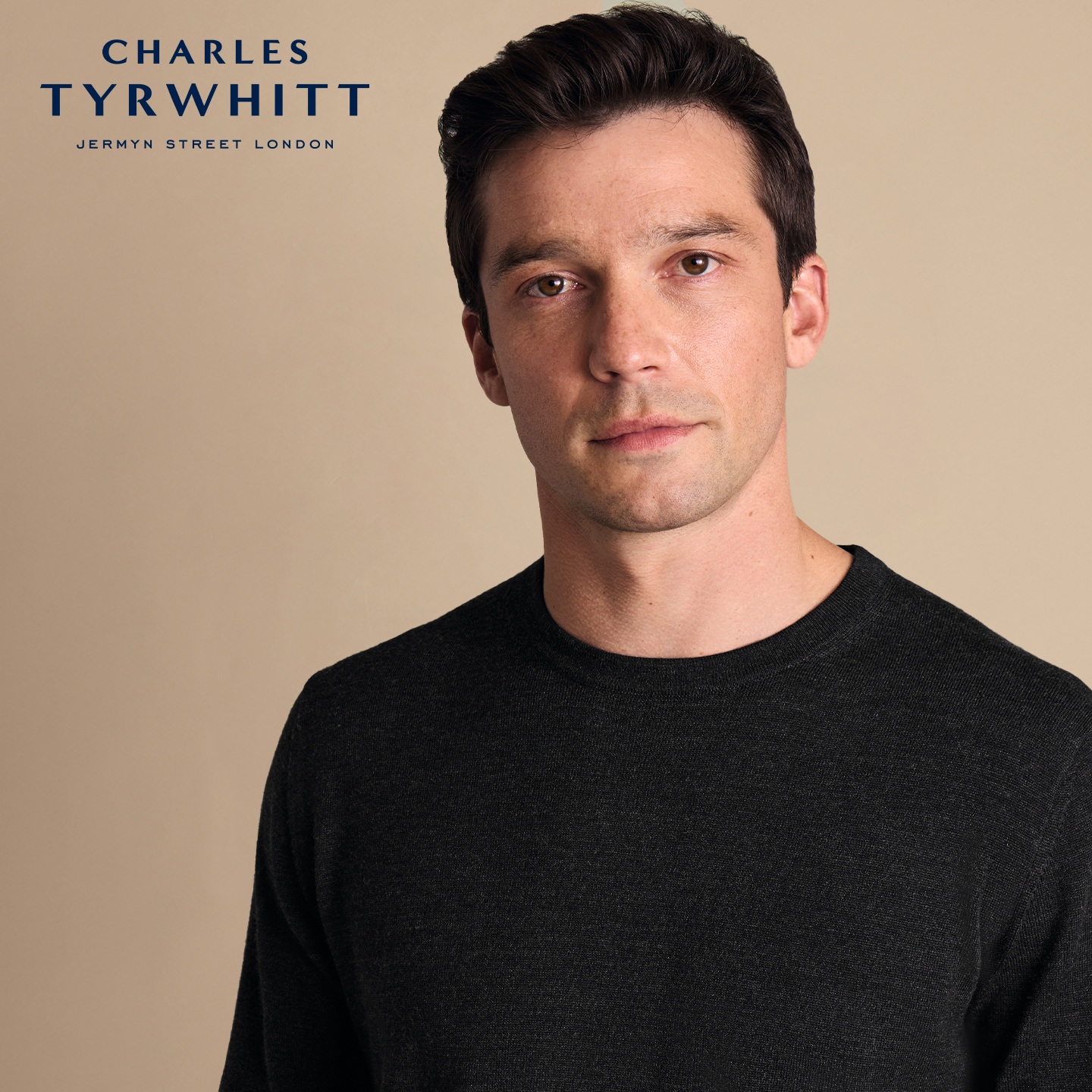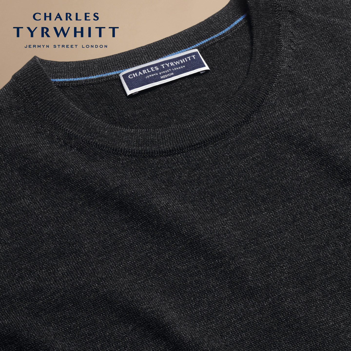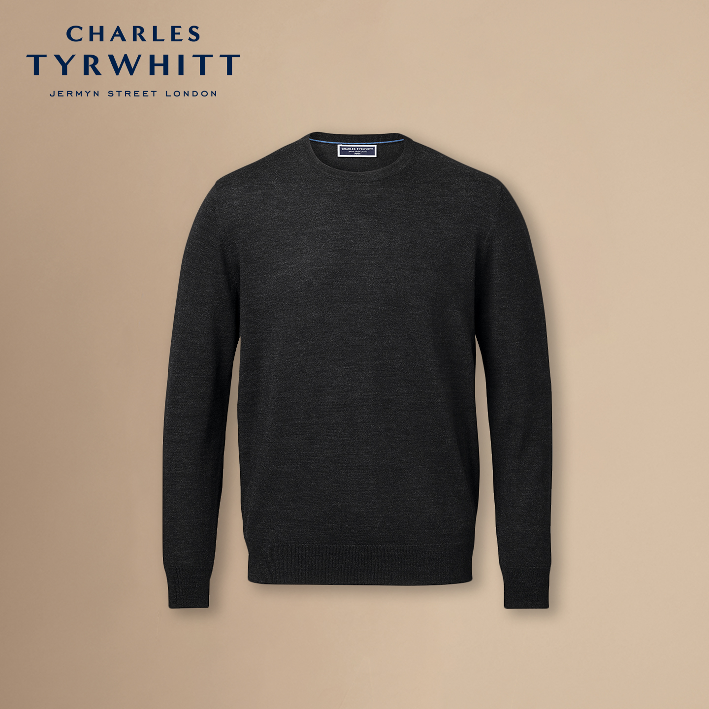 CHARLES TYRWHITT炭灰色美利奴羊毛圆领男士保暖针织衫