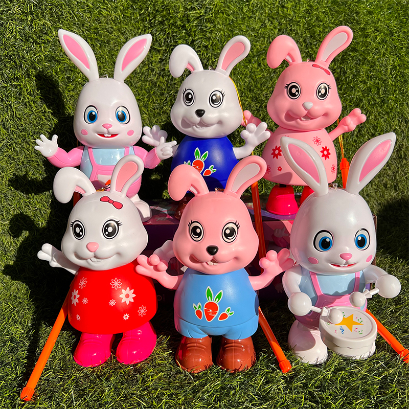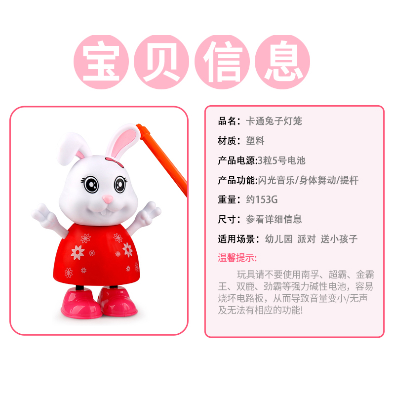 炫彩灯光音乐萌兔子玩具儿童万圣电动跳舞打鼓小白兔手提灯笼玩具