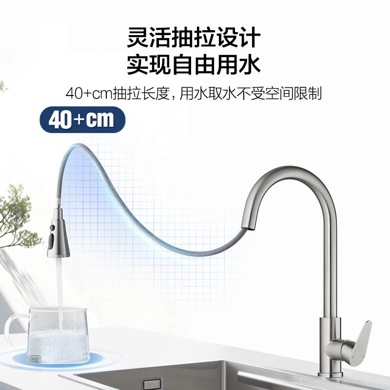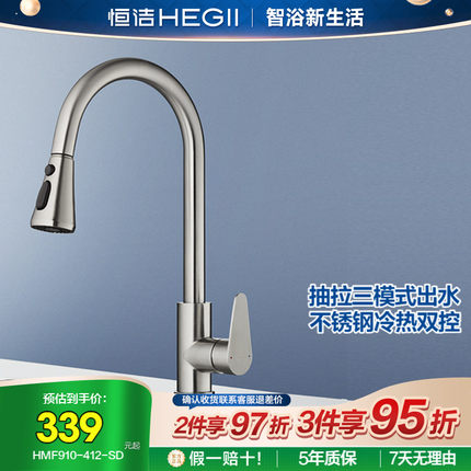 恒洁官方抽拉式厨房龙头专用冷热洗菜盆万向旋转防溅延伸龙头910