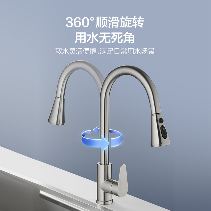 恒洁不锈钢厨房抽拉龙头