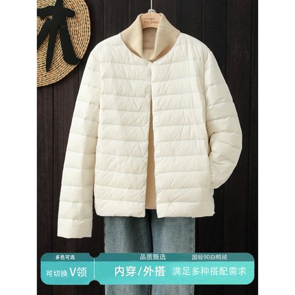 凯乐石薄荷新款轻薄款圆领内胆羽绒服女保暖短款V领内穿便携式无