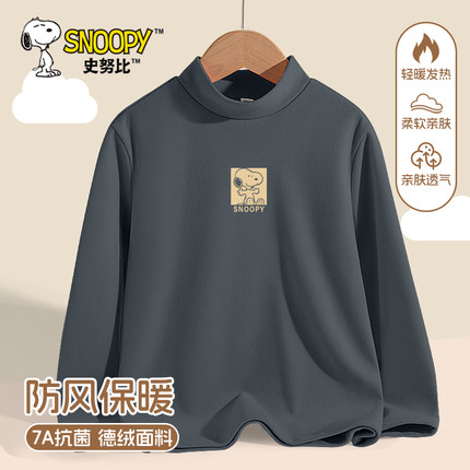 史努比男童长袖t恤2025新款男大童德绒打底衫半高领儿童秋衣男孩