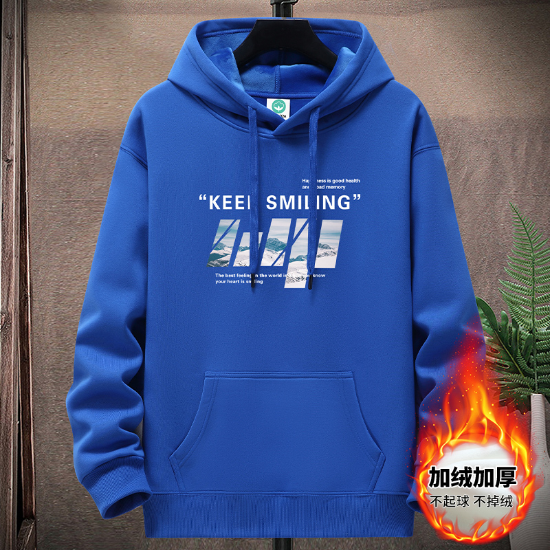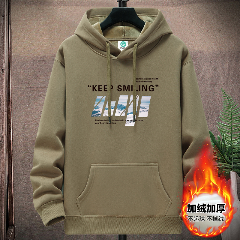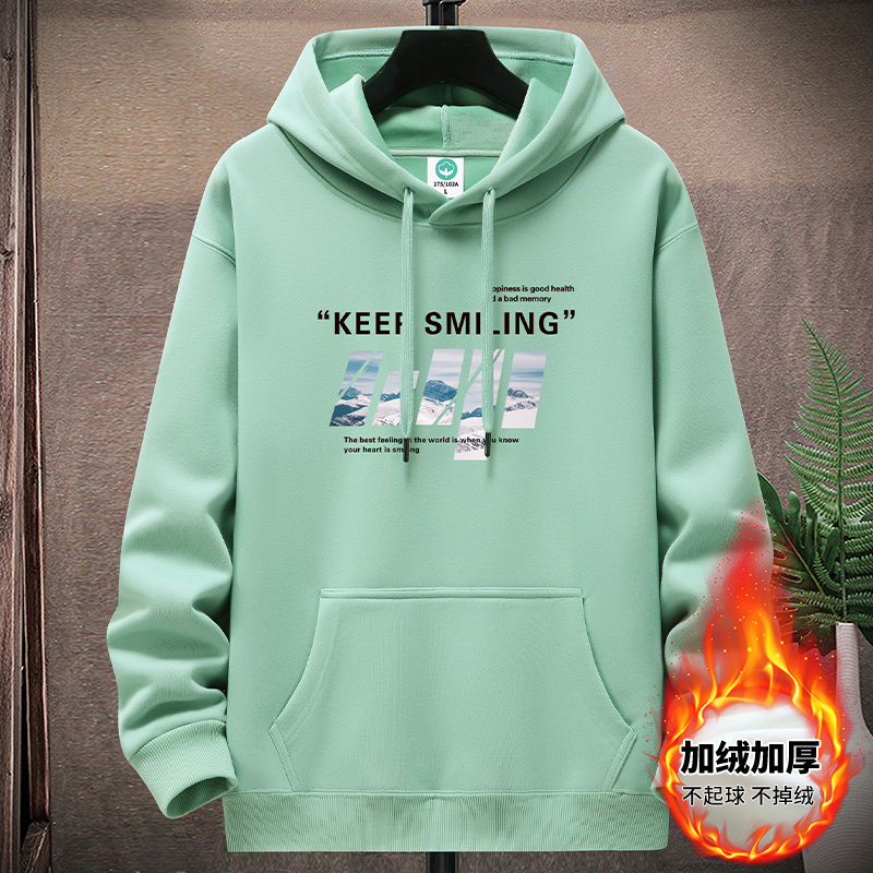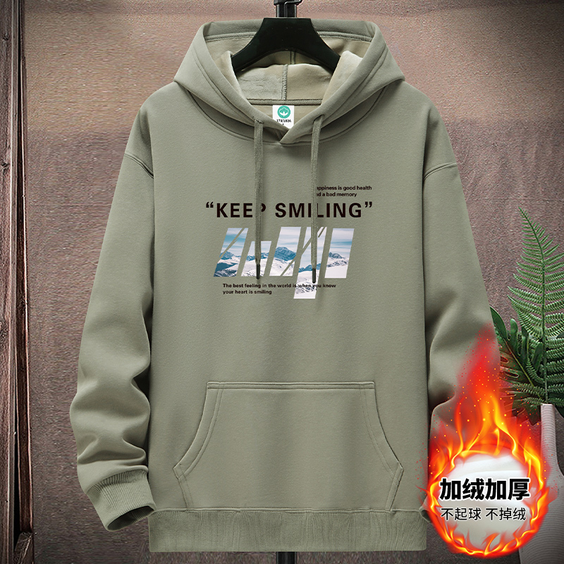 纯棉加绒卫衣男士连帽休闲外套青少年学生秋冬季加厚套头打底帽衫