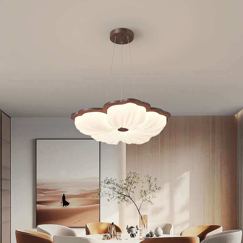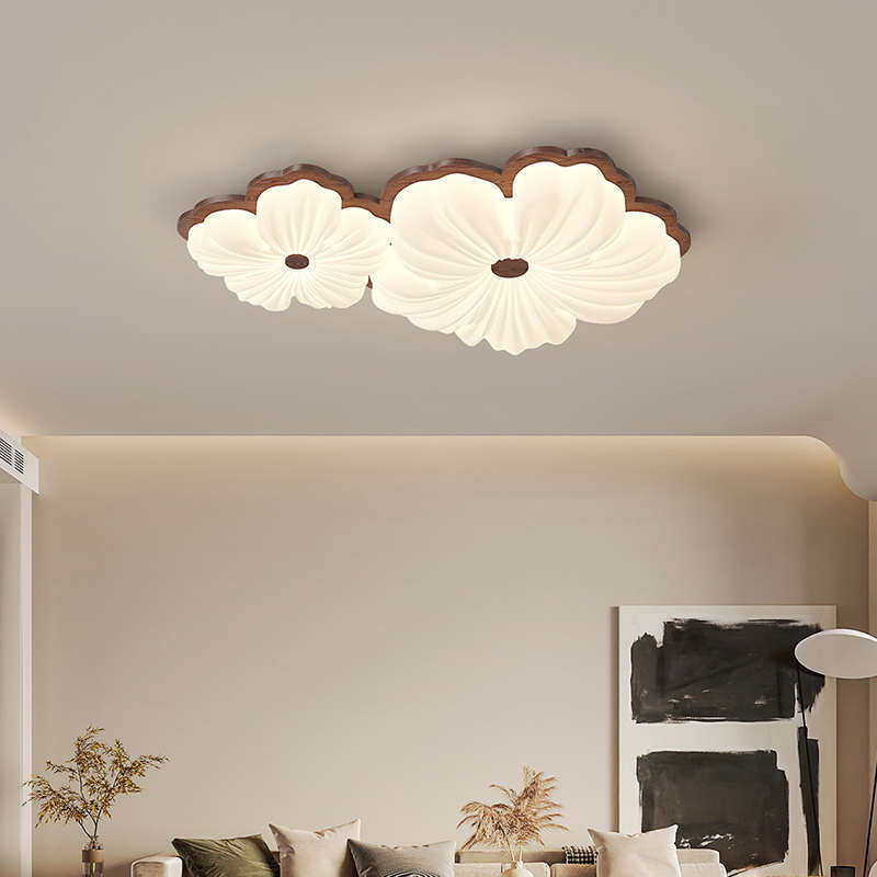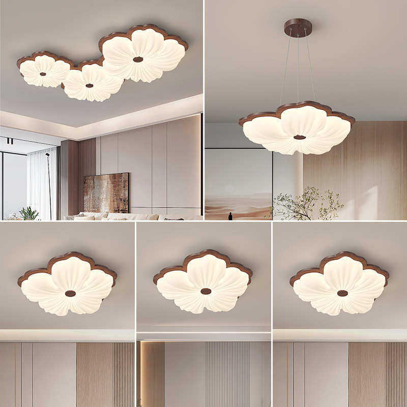 新中式创意卧室吸顶灯主卧护眼灯复古实木胡桃木中古风花瓣客厅灯